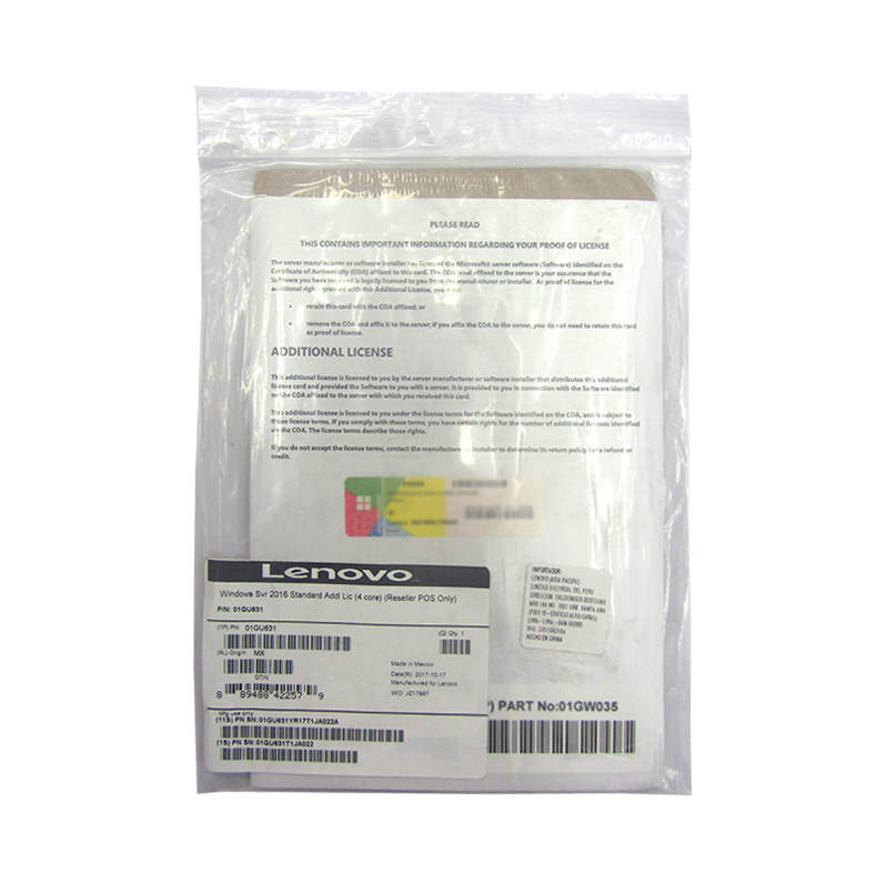 Licencia Lenovo Microsoft Windows Server 2016 Standard, OEM, 4 nucleos adicionales.
