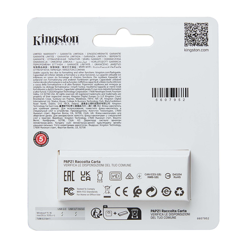 Memoria Flash USB Kingston DataTraveler Kyson, 64GB, USB 3.2 Gen 1, Plata